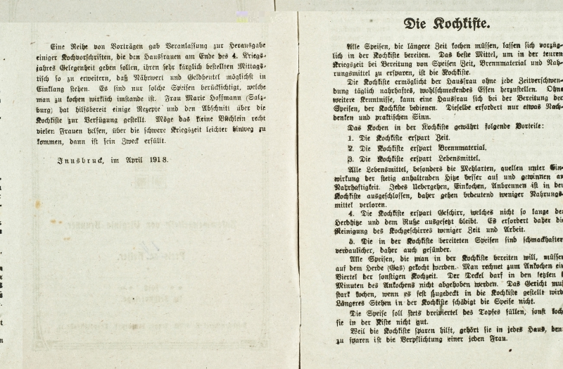 Die Kochkiste ermöglicht der Hausfrau ohne jede Zeitverschwendung täglich nahrhaftes, wohlschmeckendes Essen herzustellen.