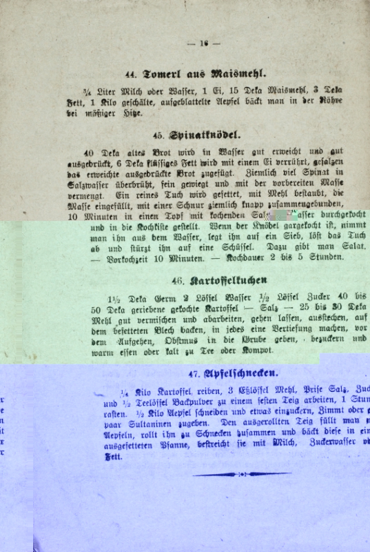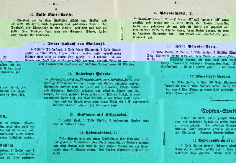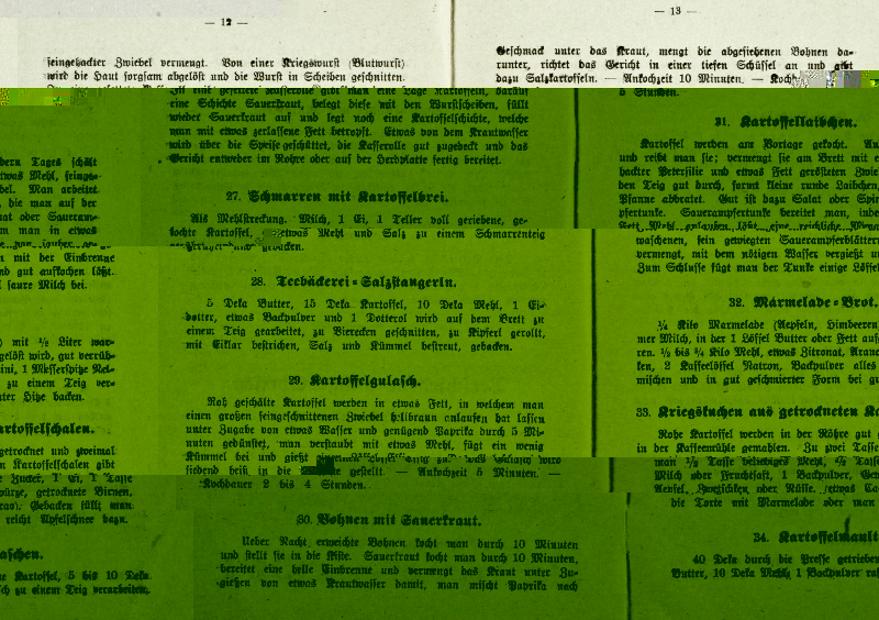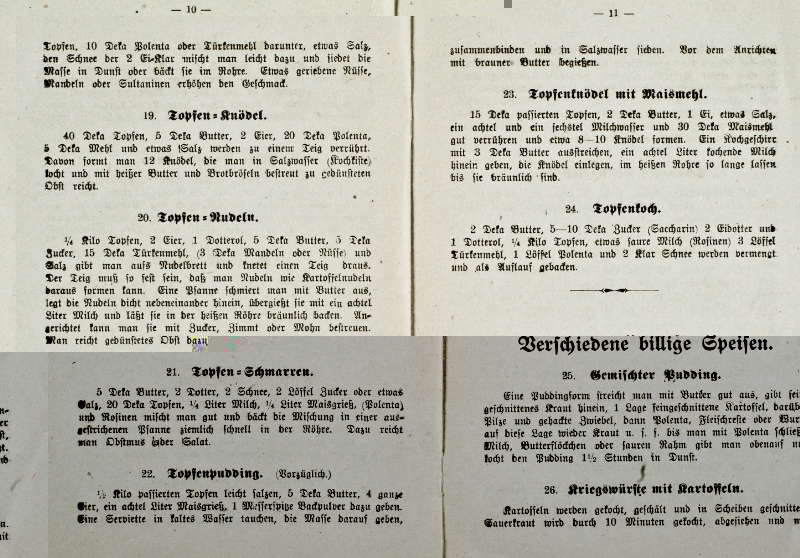 Kriegs-Speisen: Mais-, Topfen-, Kraut- und Kartoffel-Speisen wurden besonders berücksichtigt.