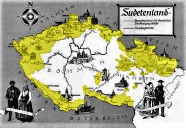Karte, die das Gebiet des Sudetenlandes zeigt