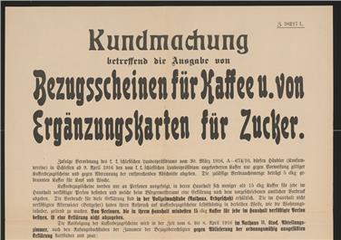 Symbolbild: Bezugsscheinverordnung der Stadt Troppau (3.4.1916) – public domain