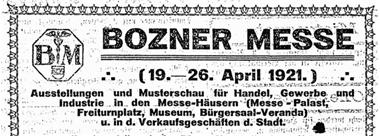 Nach der Ausgabe von 1921, die durch das faschistische Attentat auf den Trachtenzug und die beiden Opfer Franz Innerhofer aus Marling und Giovanni Battista Daprà aus Ziano di Fiemme überschattet wurde, ging der Vorstand nicht weiter auf die Einzelheiten der Ereignisse des Blutsonntags ein. Vielmehr analysierte er die ,,idealen und materiellen“ Ergebnisse der vergangenen Ausgabe. In Anbetracht der wirtschaftspolitischen Lage sei es fraglich, ob es ratsam ist, für das laufende Jahr eine Neuauflage zu planen. Tatsächlich fand die Bozner Messe erst 1948 wieder statt.