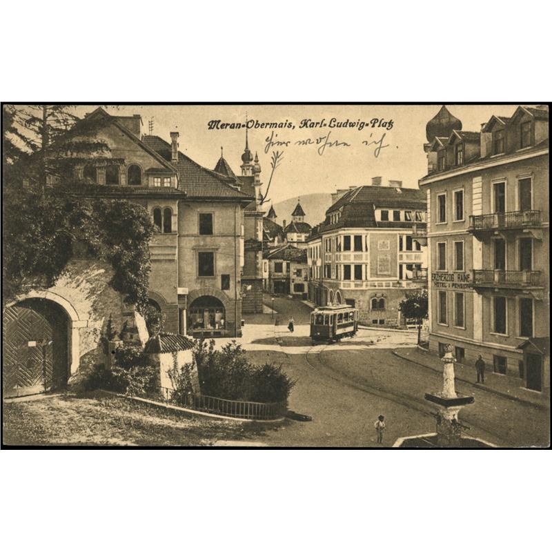 Die Stadt Meran teilt das Schicksal der Bozner, Brixner, Salurner usw., nur ist das ihre etwas gemildert durch den Umstand, daß der bisherige freigewählte Bürgermeister als Regierungskommissär an der Spitze des Gemeinwesens bleibt und die Geschäfte leitet. Allerdings nicht als von der Bürgerschaft gewählter und ihr verantwortlicher Vertreter, sondern eben als Regierungskommissär. Das ist der Unterschied, welchen die Bevölkerung drückend empfindet und weshalb sie sich fragt: Womit haben wir das verdient? Für die Gemeinden Obermais, Untermais und Gratsch ist die Situation freilich noch peinlicher als für die Stadtgemeinde.“
