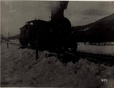 Symbolbild: Eine Lokomotive bei Toblach, Februar 1916 – Quelle: K.u.k. Kriegspressequartier