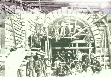 Bild: Bauarbeiter der Reschenbahn bei Landeck – Quelle: Stadtarchiv Landeck/Manfred Jenewein