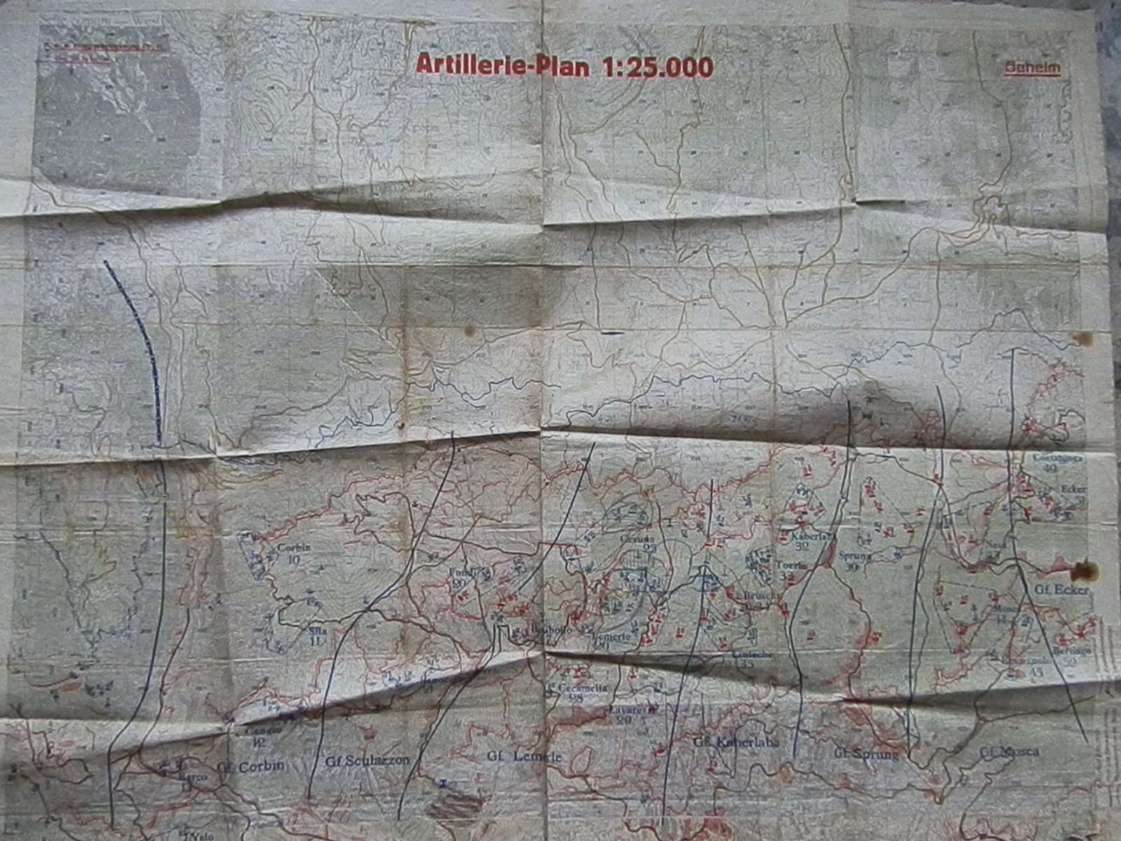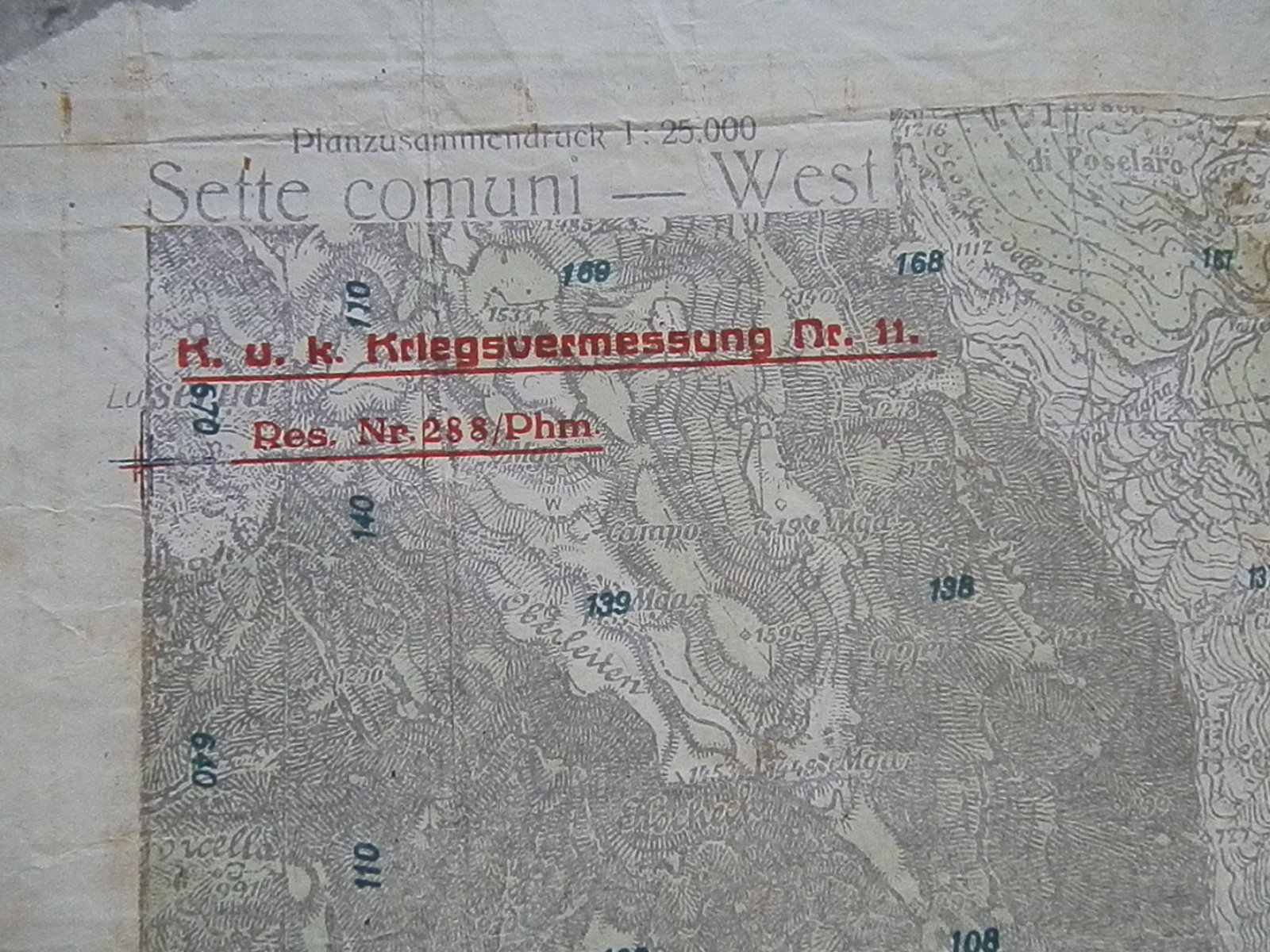 Cartina militare topografica dei Sette Comuni, originale, dalla collezione privata della famiglia Bertoldi.