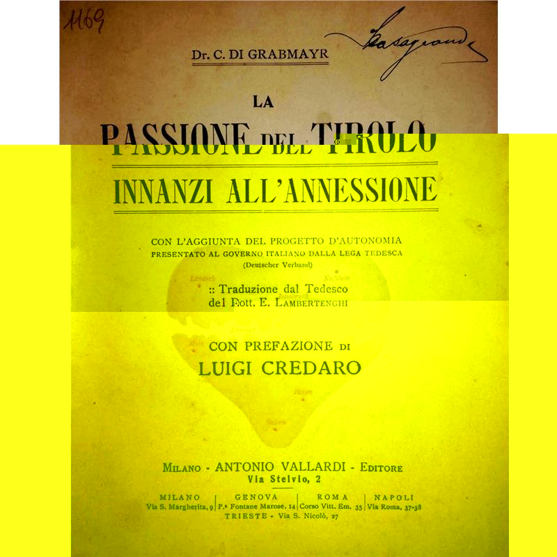 Credaro, oltre ad essere in contatto personale con Grabmayr, nutriva per lui una sincera stima. Il fatto che volesse pubblicare il libro non significa ovviamente che ne condivideva il punto di vista antiitaliano o che fosse contrario all’annessione. Egli era uomo di governo e patriota italiano, ciononostante voleva che gli italiani potessero conoscere il punto di vista dei sudtirolesi sull’annessione.