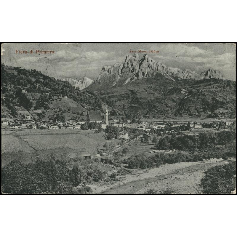 Immagine: Fiera di Primiero, cartolina (circolata nel 1908) – fonte: AKON, Österreichische Nationalbibliothek