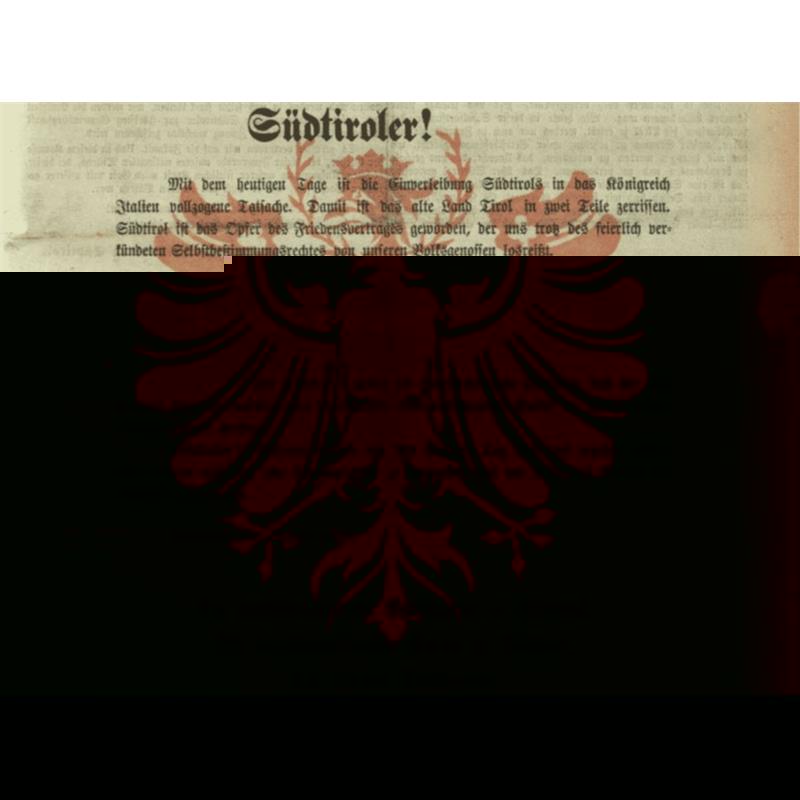Con la giornata odierna l'annessione del Sudtirolo al regno d'Italia è un fatto compiuto. L'antico Land Tirolo è stato strappato in due. Il Sudtirolo è vittima di un trattato di pace, che, nonostante solenni promesse di autodeterminazione, ci separa dai nostri fratelli.