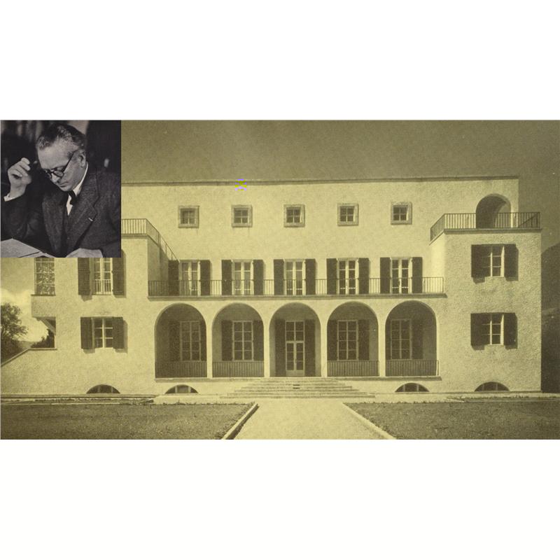 Collage: foto di Clemens Holzmeister; Villa Pretz – fonte: Die Bau- und Werkkunst. Monatsschrift für alle Gebiete der Architektur und angewandten Kunst, Ottobre 1930, pagina 10.